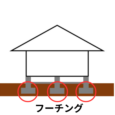 フーチングとは、柱や壁の下に配置する広がった基礎部分で、荷重を地盤に分散させる役割を持ちます。