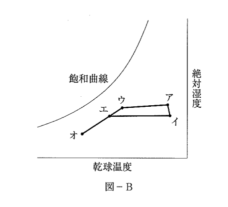 よって、選択肢5は誤りとなります。 - 最後に、「エ」ですが、室内で仕事を終えた空気である「ウ」と、外気である「オ」が混ざっています。